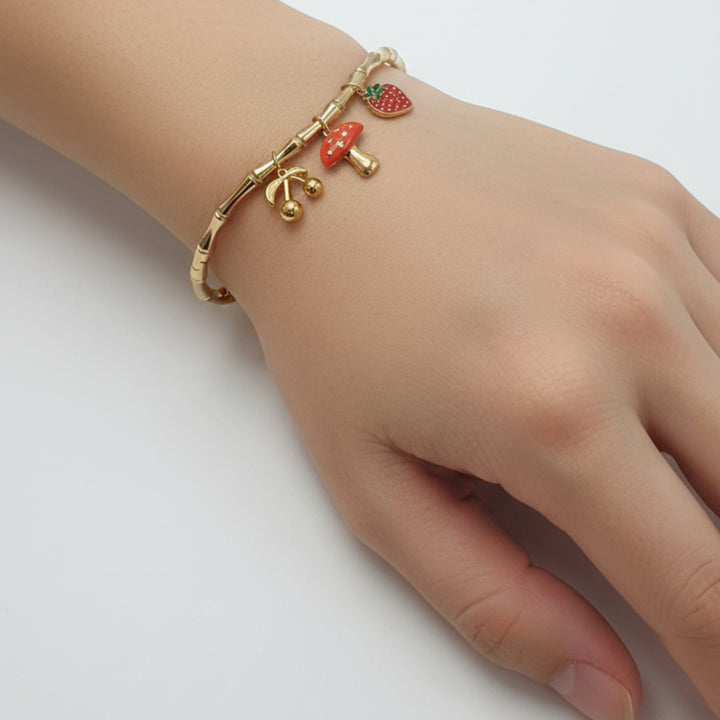 Elegant Bamboo Style Bracelet featuring a textured bamboo-inspired design. Crafted with a glossy metallic finish, it adds a touch of sophistication to both casual and formal looks. Lightweight, comfortable, and perfect for everyday wear. |