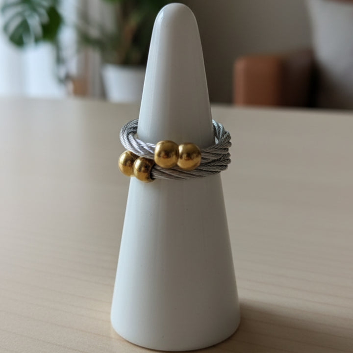 Add a modern edge to your jewelry collection with this Cable & Coil Ring. Featuring a unique intertwined design, this ring is lightweight, durable, and perfect for everyday wear or as a statement piece. Ideal for gifting or treating yourself to a stylish accessory. |