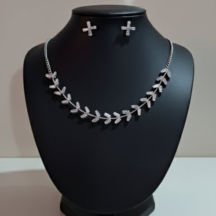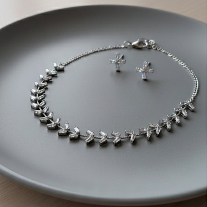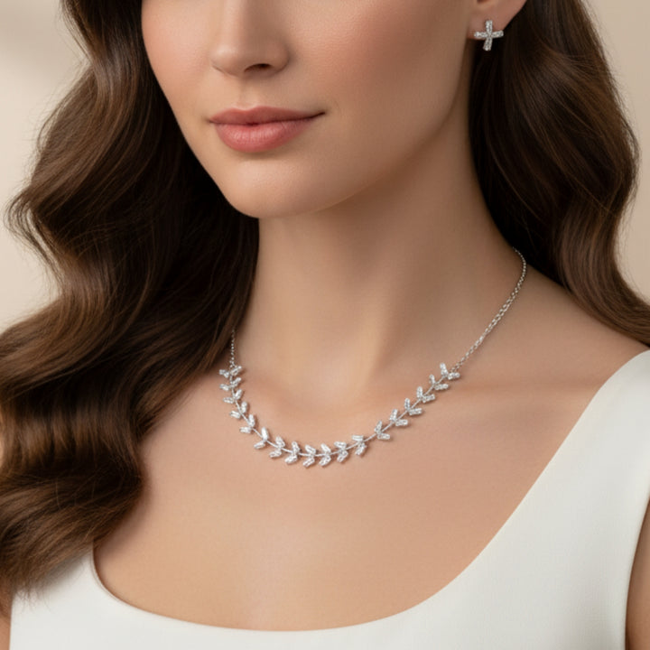 Elegant Crystal Leaf Necklace featuring a delicate leaf-shaped pendant adorned with sparkling crystals. Perfect for parties, gifting, or adding a touch of nature-inspired beauty to your style. |