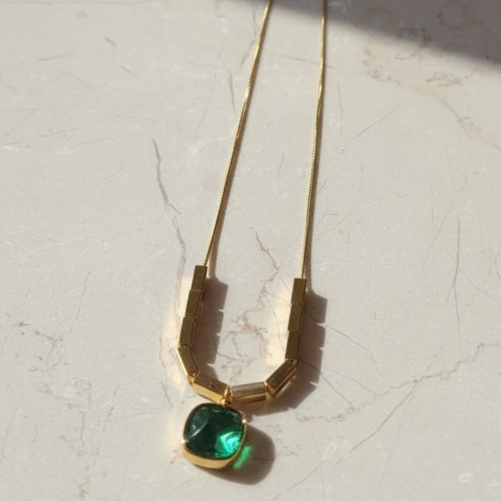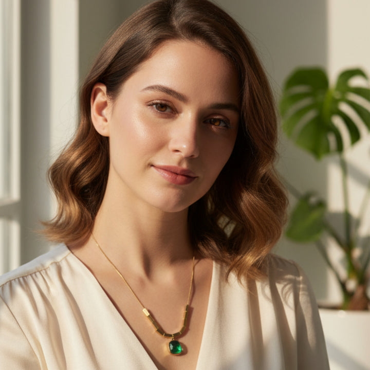 Elegant Emerald Cut Necklace featuring a stunning emerald-cut gemstone pendant set in a sleek frame. Perfect for evening wear, gifting, or adding timeless sophistication to your jewellery collection. |