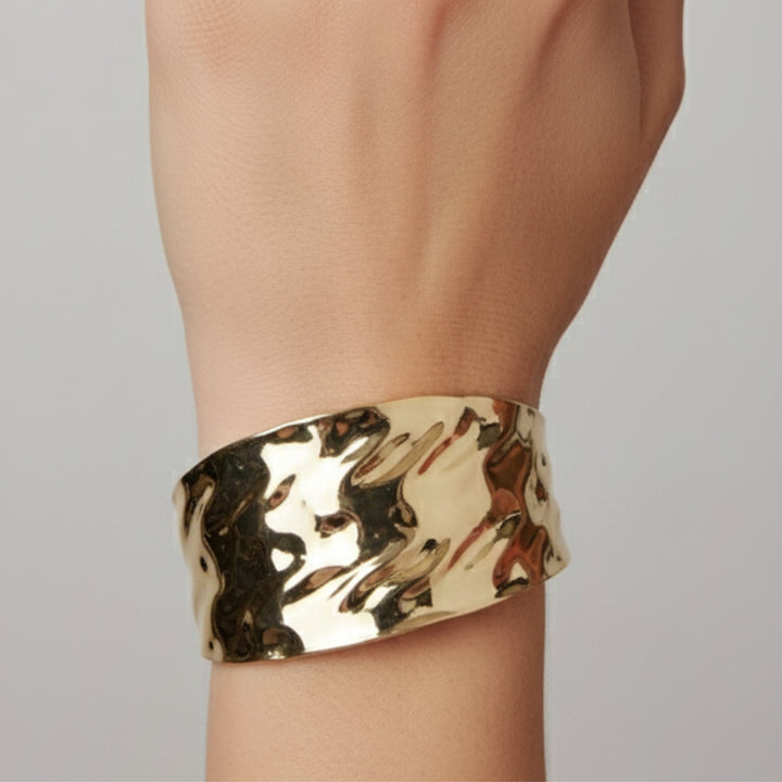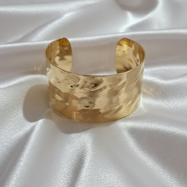 Classic Gold Cuff Bracelet featuring a minimal yet bold design. Perfect for layering or wearing solo for a sleek, modern statement look. |