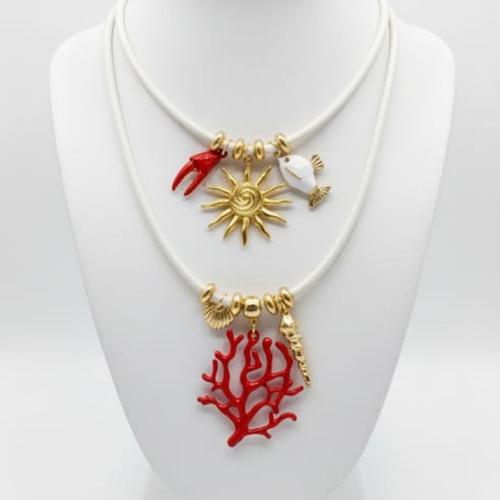 Nautical-inspired Marine Charm Necklace featuring delicate ocean-themed charms like shells, starfish, and anchors. Perfect for beach lovers, vacations, and everyday coastal style. |