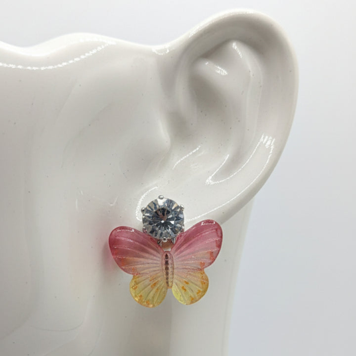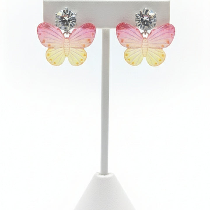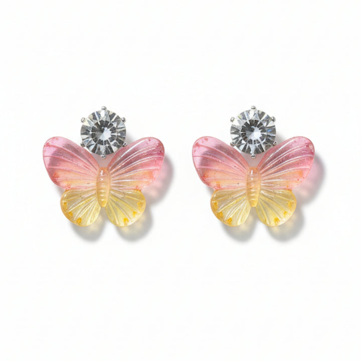 Bring a vibrant charm to your style with the Pink Yellow Shade Butterfly Stud Earrings. Designed with dual-tone enamel wings in pink and yellow, these studs add a playful yet elegant touch to your everyday look. Lightweight, durable, and perfect for gifting. |